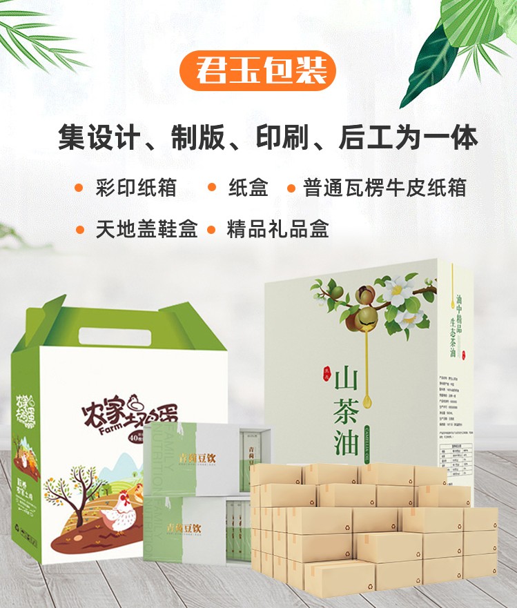 武陟縣君玉包裝有限公司是一家集設(shè)計(jì)、制版、印刷、后工為一體的紙制品生產(chǎn)企業(yè),產(chǎn)品主要分類(lèi):彩印紙箱、紙盒、普通瓦楞牛皮紙箱、天地蓋鞋盒、精品禮品盒等紙制品包裝。